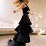 Falda negra con diversas capas de vuelos livianos en crep, con mucho movimiento para que en cada paso que des, te veas tan linda como te sientes al usarla. Su pretina blandamente elasticada, permite que te sientas cómoda en todo momento al adaptarse muy bien a tu cintura.