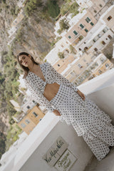 La caída suave y el diseño abierto en el busto realzan la silueta con delicadeza, aportando movimiento, aire romántico y sofisticación.