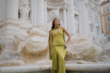 El cinturón se puede estilizar de muchas formas — amarrado al frente, al costado o atrás — convirtiéndolo en una pieza versátil para cualquier ocasión.